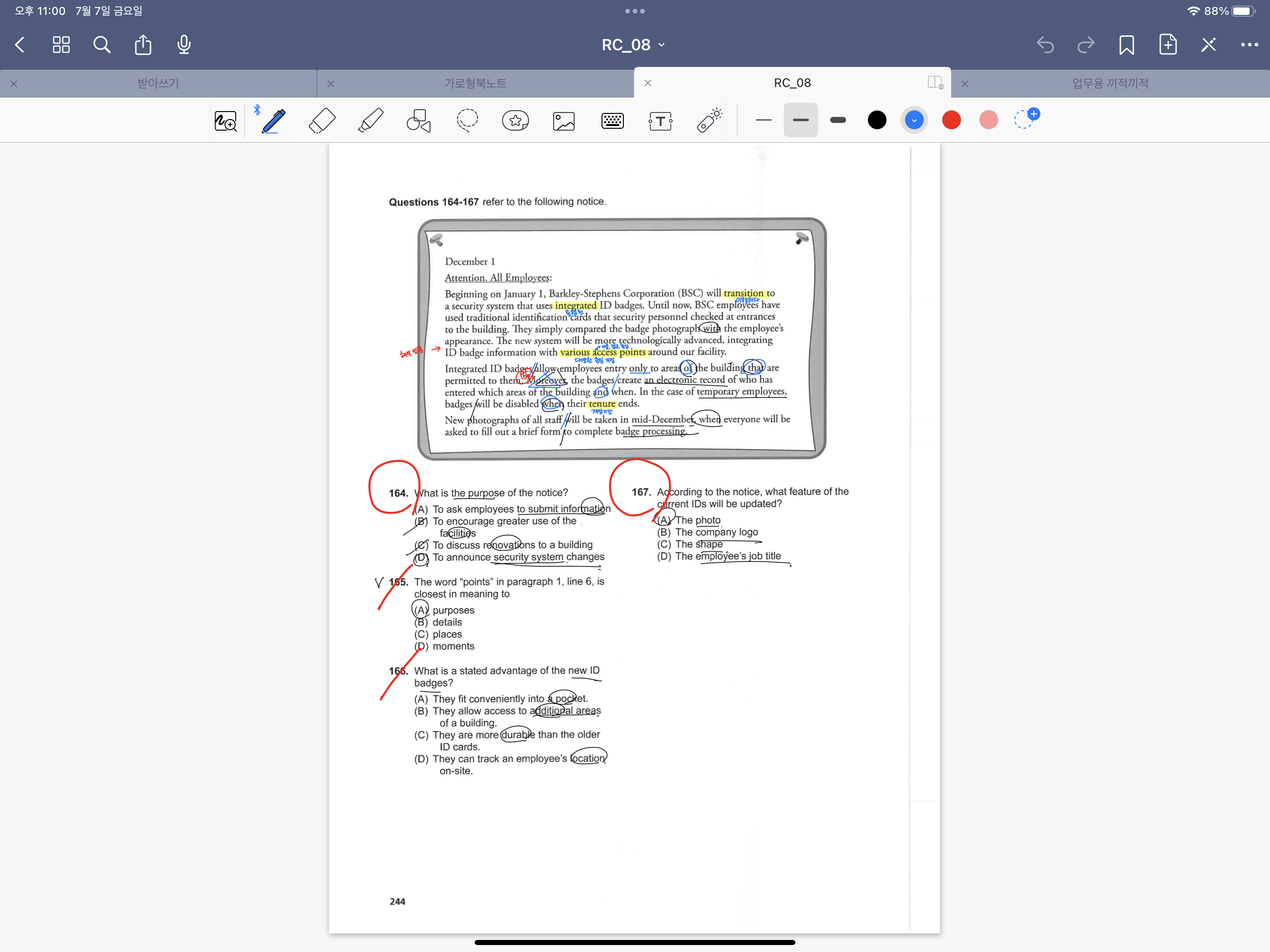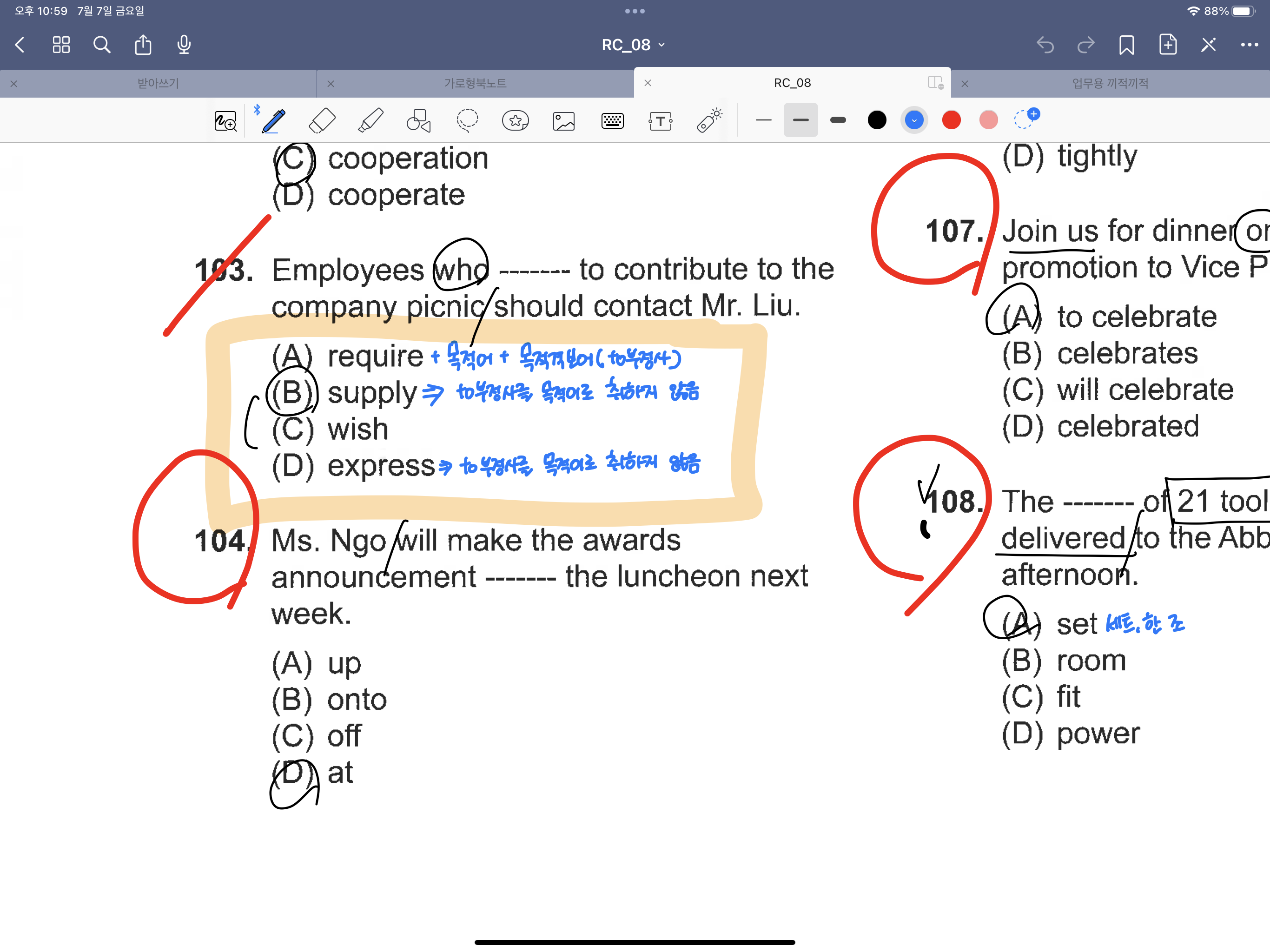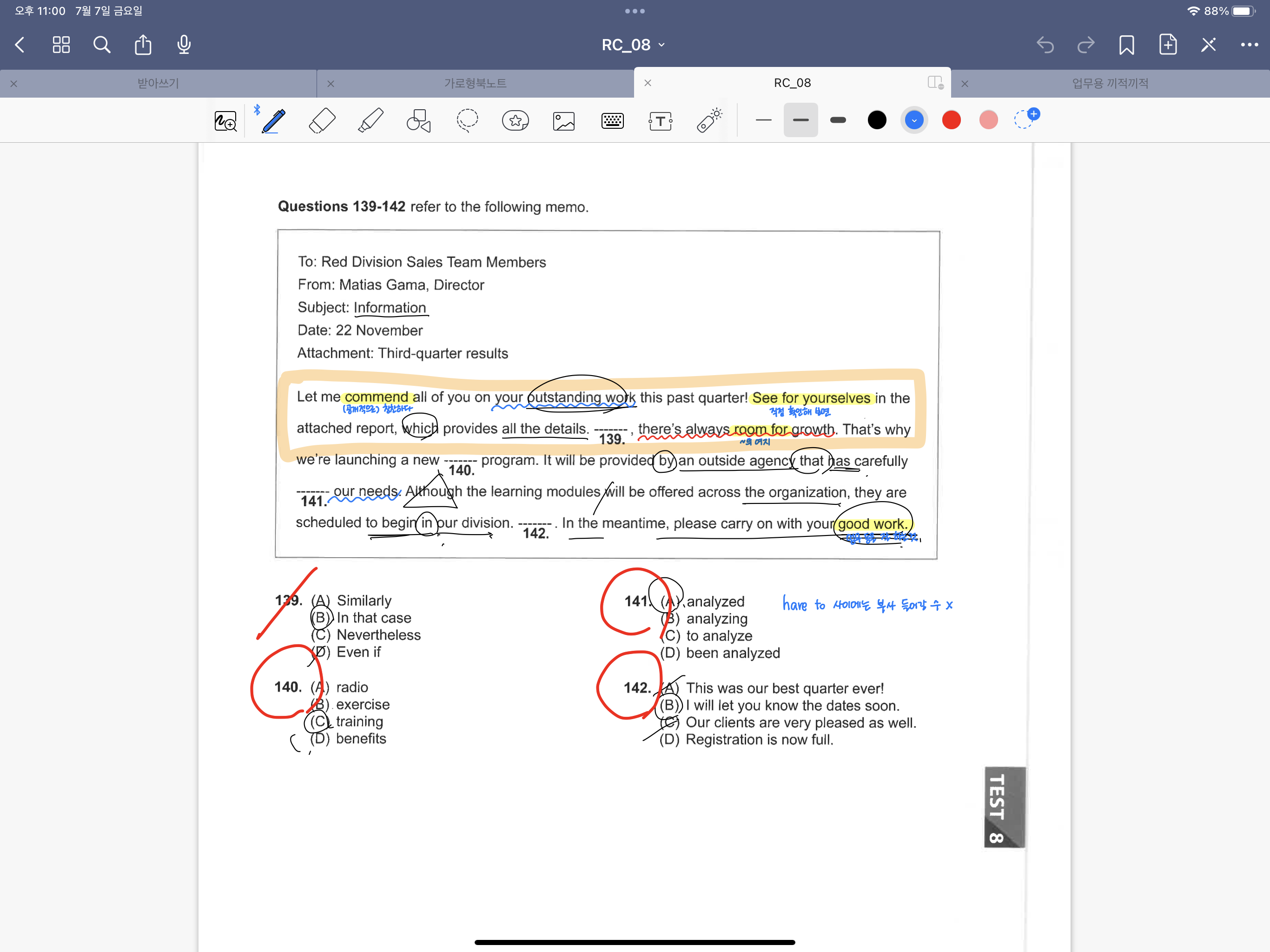 TEST 08의 오답 정리를 다 끝마졌다!