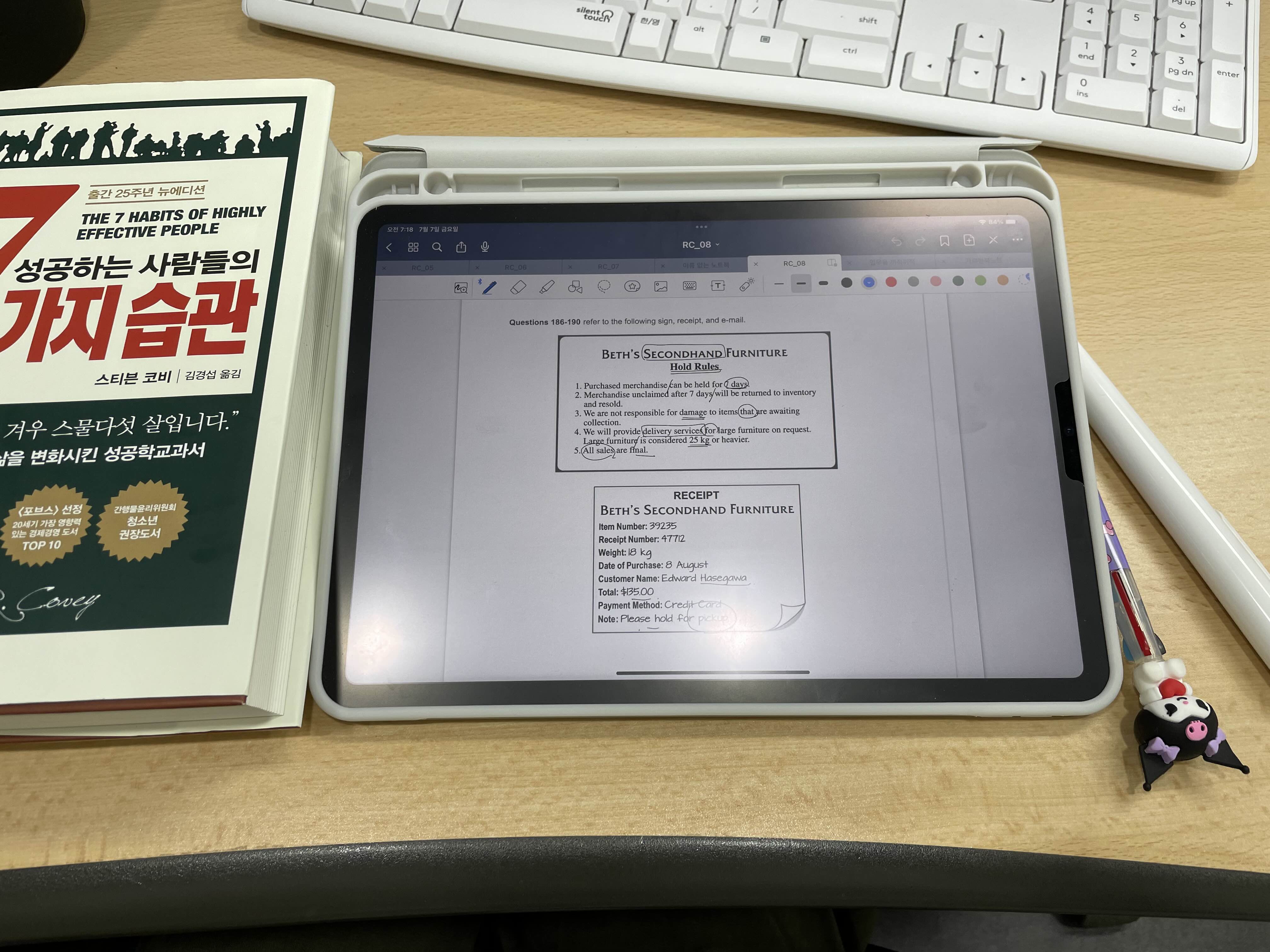 7월 목표 : 아침 7시 출근 / 아침 1시간 공부시간 꼭 지키기 / 저녁에 집에 와서 LC 듣고 오답정리 철저히